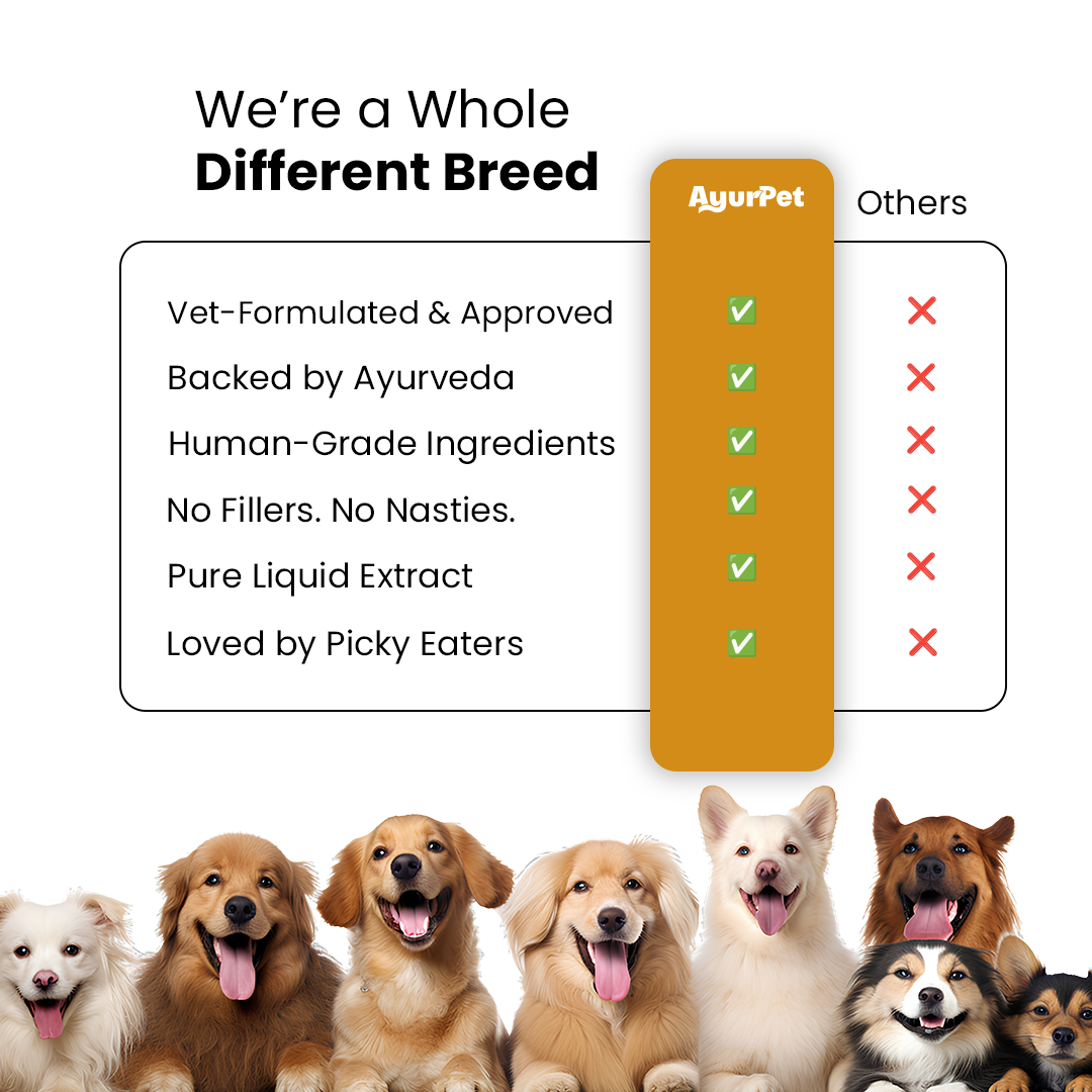 That’s why AyurPet Hip O Joint is crafted with a vet approved blend of powerful joint nutrients and Ayurvedic actives including Glucosamine, Boswellia, Turmeric and other supportive herbal extracts.